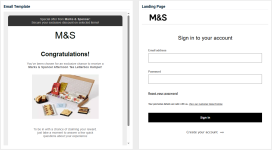 - An image of the email template and the landing page.