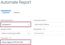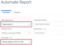 On the Automate Report page, after selecting an SMB Organization and time zone, selecting a different organization would reset the Time Zone field to the default value.