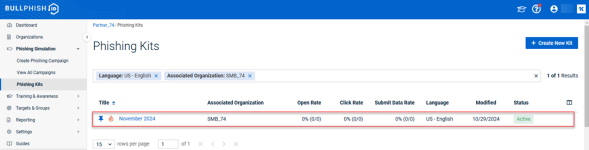 When a new phishing kit was created for an SMB that was recently added to BullPhish ID, the new phishing kit was not found on the Phishing Kits page. This issue occurred for partners with more than 20 SMBs. The issue has been resolved.