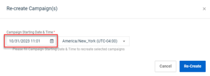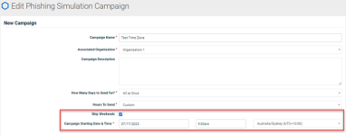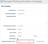- Issue: When you included the [now] variable in your phishing and training email templates, the date and time in the email invitations was displayed in the Eastern time zone regardless of the time zone selected when creating a campaign.