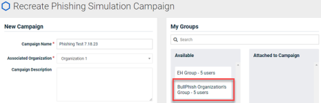 - Targets status remains unchanged on BullPhish ID: This is the default selection. When targets are deleted from active directory groups: