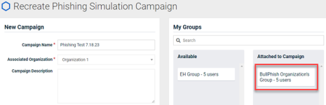 You will notice some terminology updates have been made throughout the BullPhish ID user interface. These changes were made to align BullPhish ID with the common terminology being used across all Kaseya products.