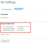 IMPORTANT Users are not required to update their passwords at this time. Going forward, the new policy will be enforced for new accounts and password resets.