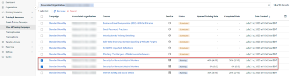 An issue was encountered where training campaigns that included more than 200 targets were cancelled. This affected training campaigns that started processing between July 4, 2023 at 8:56 AM and July 10, 2023 at 1:00 PM.