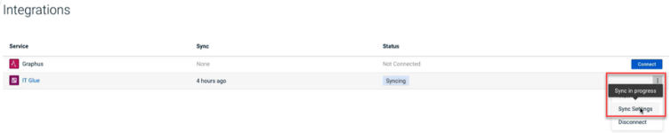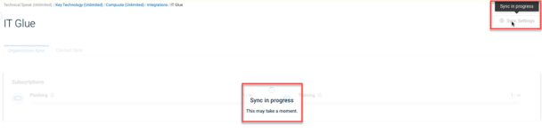 Therefore, the data presented when using the Add from IT Glue, IT Glue Organization, and Sync Settings functionality in BullPhish ID is automatically synced within one minute of IT Glue updates.