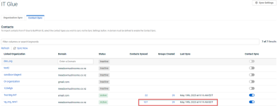 Now, IT Glue organizations can successfully sync 100 or more contacts with BullPhish ID, as displayed on the Contact Sync tab below.