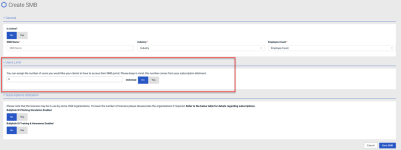When creating a new SMB organization, the requirement to specify the SMB user limit has been eliminated.