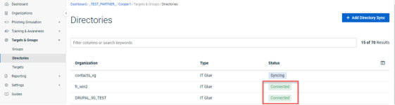 When Continuous Target Sync is enabled, a one-time sync is initiated for all ongoing training campaigns associated with your SMB organizations. Note that it may take several hours for the campaigns to be updated with the latest target list.