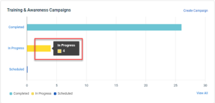 - The View All link navigates to the phishing/training campaign View All page where you can view all of your organization’s campaigns.