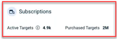 The Subscriptions card enables partners to track target usage. The card indicates the number of Active Targets and the total number of Purchased Targets.