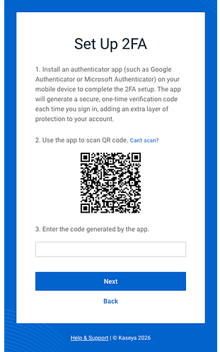 - In the Set Up 2FA modal, scan the QR code using the authenticator app on your mobile device.