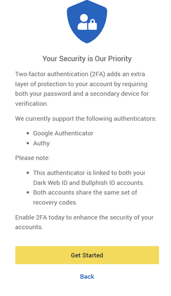 The next time the user logs into https://secure.darkwebid.com/, they will be prompted to enable 2FA.