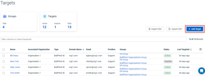 This article includes the procedures for adding, editing, and deleting targets in BullPhish ID.