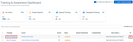 Note: You cannot edit the Frequency.- On the Training & Awareness Dashboard page, do one of the following:
