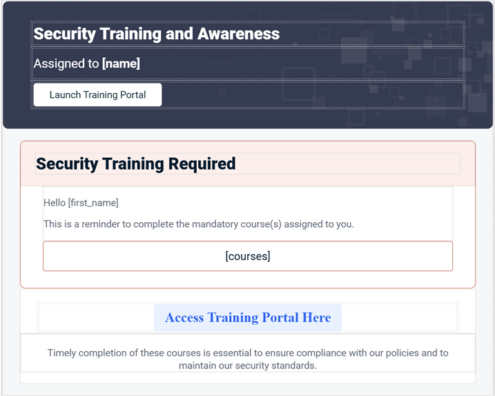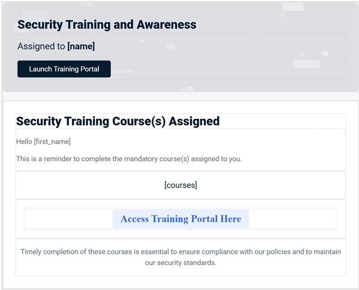 - When a target opens a reminder email containing the Training Portal link, this action is tracked as "Email Opened" status for all courses included in the reminder email.