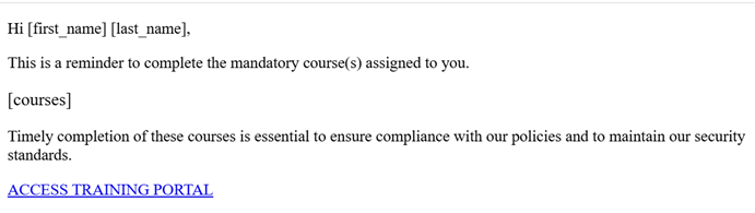 - Once the target has completed the course, whether passed or failed, they will no longer receive email reminders related to it.