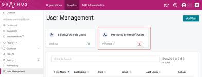 For Office 365 organizations, click the hyperlink number in the Protected Microsoft Users card.