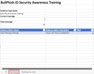 In the file, the Summary tab indicates the number of users who have completed a training campaign within the last two years.