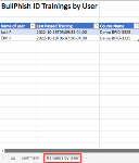 The Trainings by User tab lists each user and the date and time the user last passed the training course identified in the Course Name column.