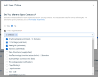 You can manually sync and update the selection. For example, if you want to sync only Active status and specific organization types, make the selection accordingly.