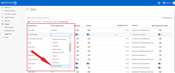 - Click the dropdown button from the IT Glue SMB organization column; for example, testingorg7.