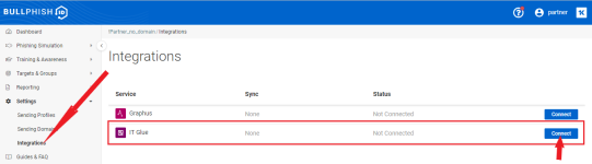 NOTE One IT Glue organization can only be linked with one organization in BullPhish ID.