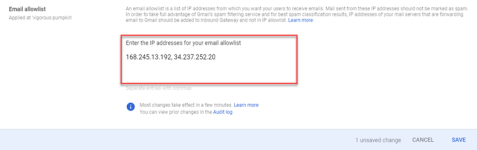 - Copy the IP address 34.237.252.20. The phishing & training campaign emails are sent from this SMTP Server IP address.