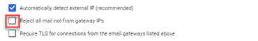 IMPORTANT If you don't clear the Reject all mail not from gateway IPs check box, you may experience issues receiving email.