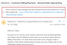 Emails sent from domains not in your organization's Safe Senders list in Outlook may display a message that some email content, including images, may be blocked.