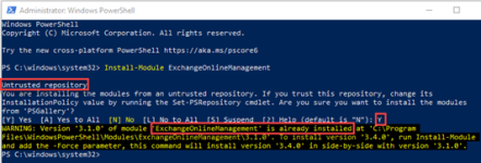NOTE A message is displayed if ExchangeOnlineManagement is already installed.