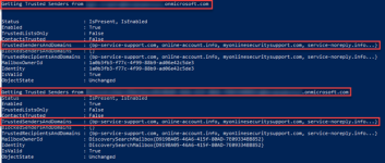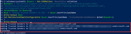 - To verify the domains have been added to each user's safe senders list, copy the following code and paste, execute in PowerShell.