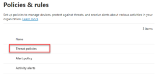 - In the Microsoft 365 Defender navigation menu, select Email & collaboration > Policies & rules.