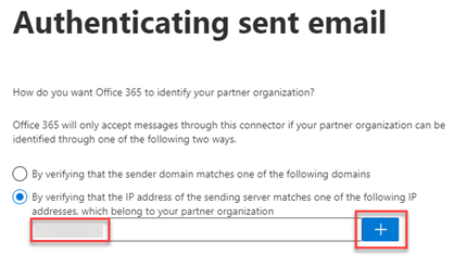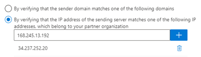 - Select By verifying that the IP address of the sending server matches one of the following IP addresses, which belong to your partner organization.