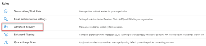- On the Threat policies page, in the Rules section, click Advanced delivery.