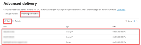 Allowlist BullPhish ID domains, IP addresses, and simulation URLs in Microsoft 365 Defender
