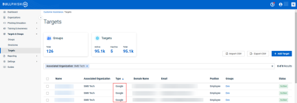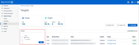 - The Status of targets removed from the directory will be updated to Inactive on the Targets page in BullPhish ID.