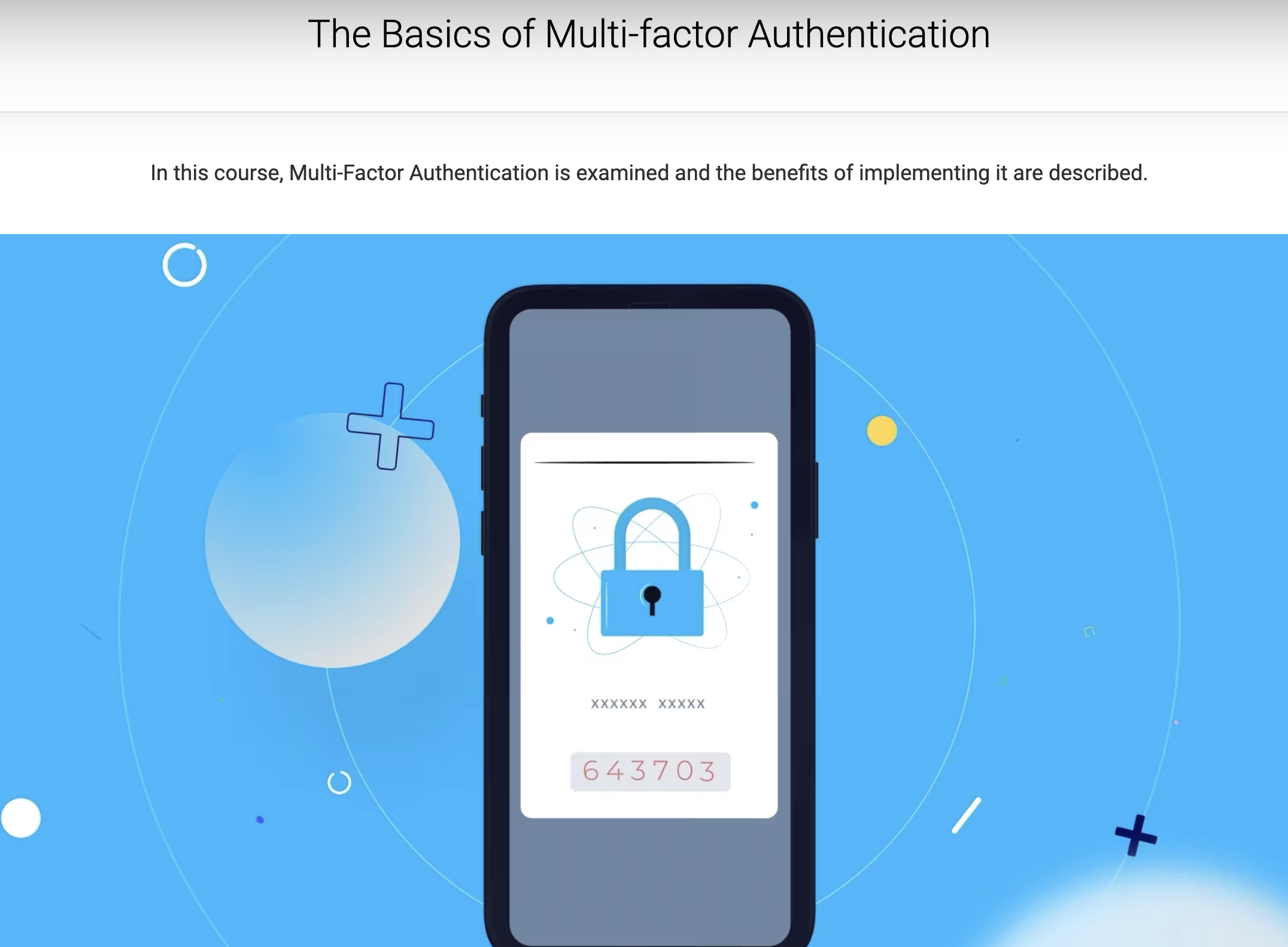 The Multi-factor Authentication course has been deactivated because it is outdated. You can find updated content in The Basics of Multi-factor Authentication. In this course, multi-factor authentication is examined and the benefits of implementing it are described.