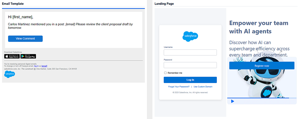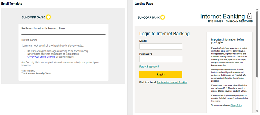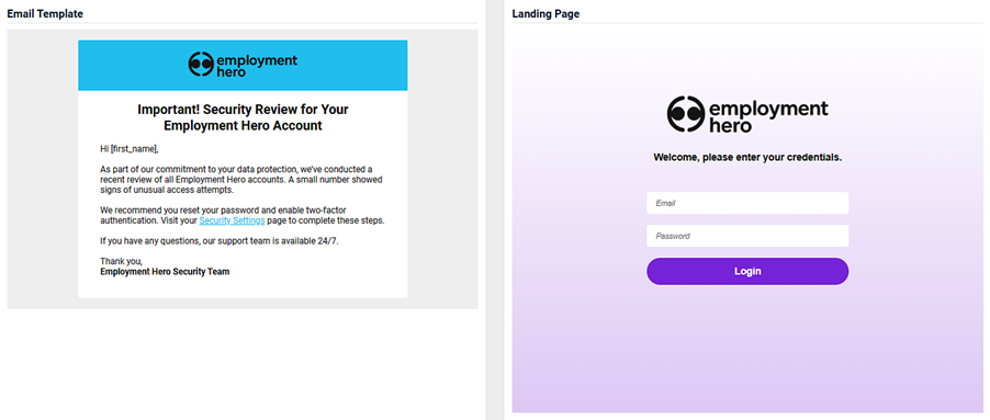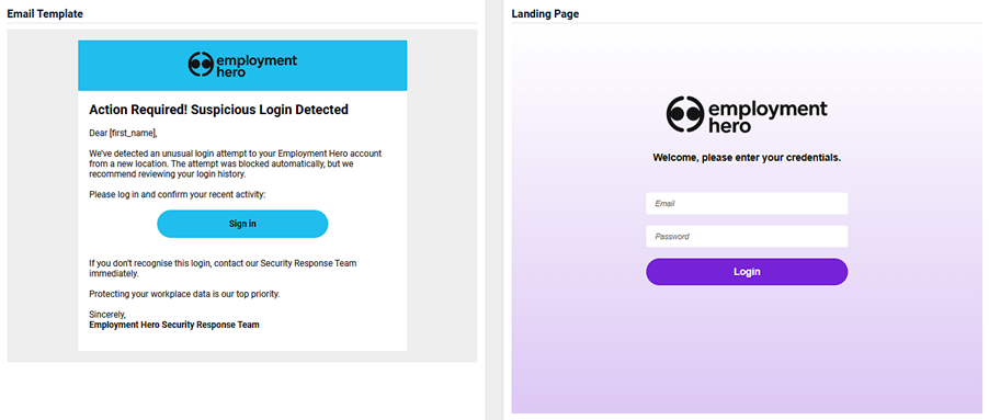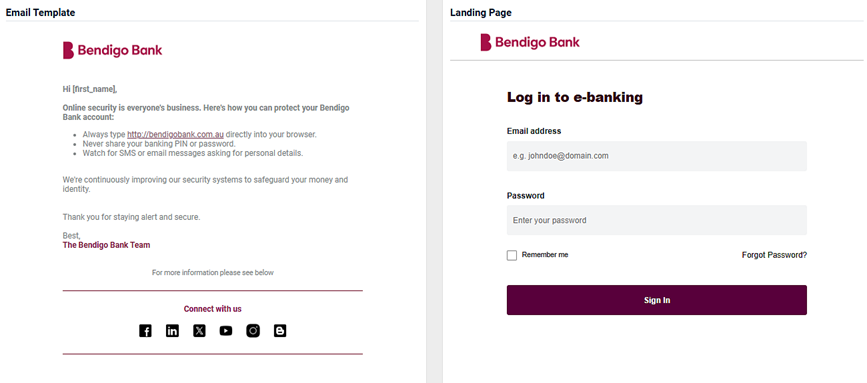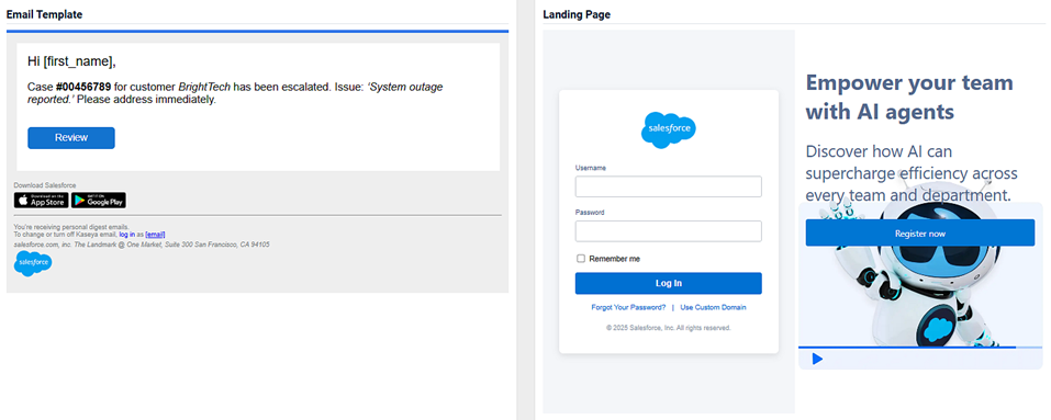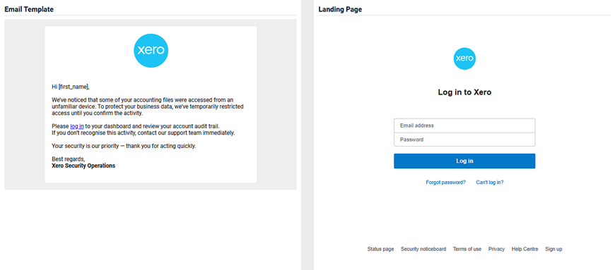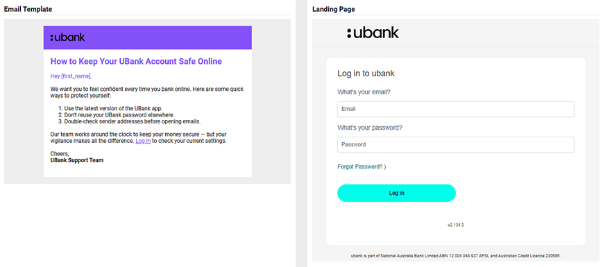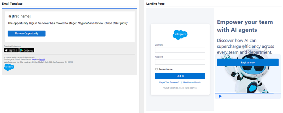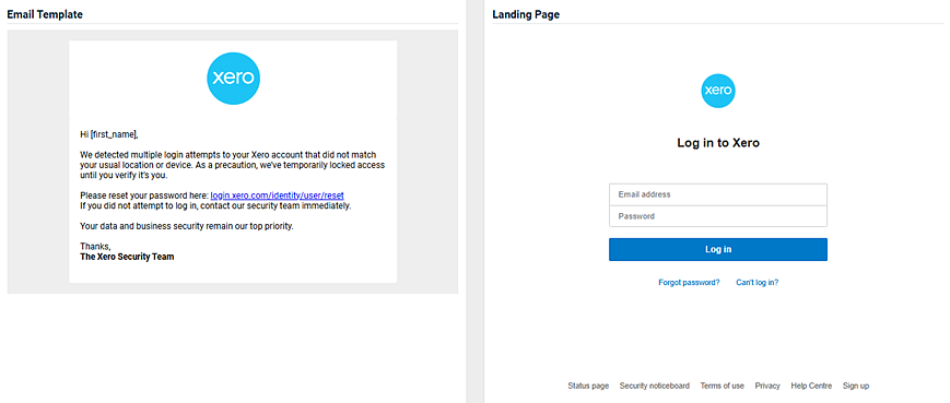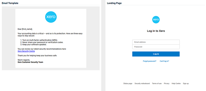 - An image of the email template and the landing page.