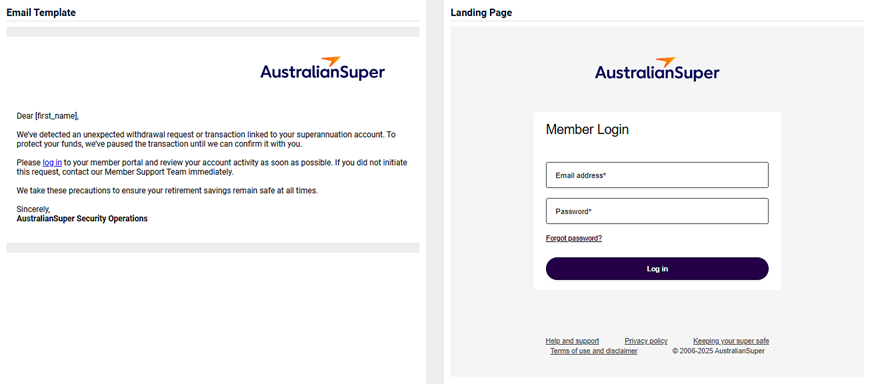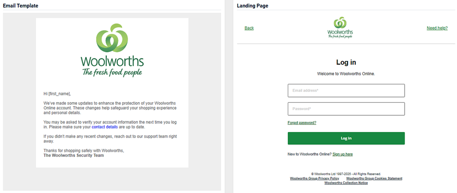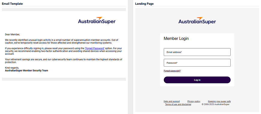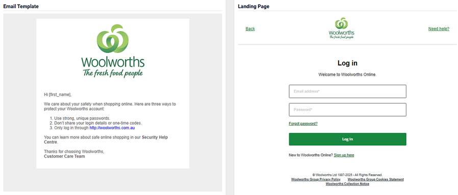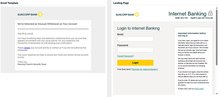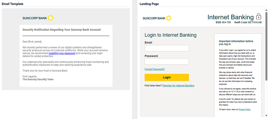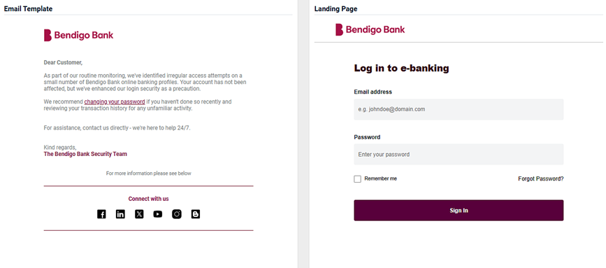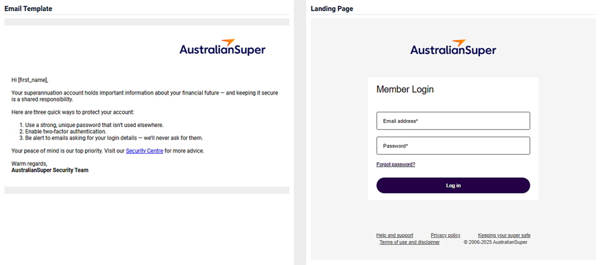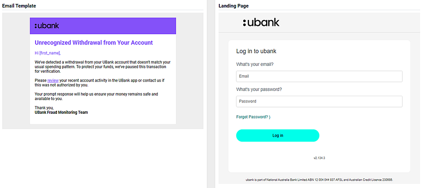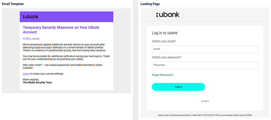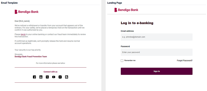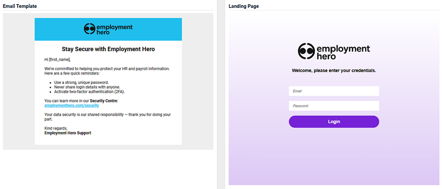 - An image of the email template and the landing page.